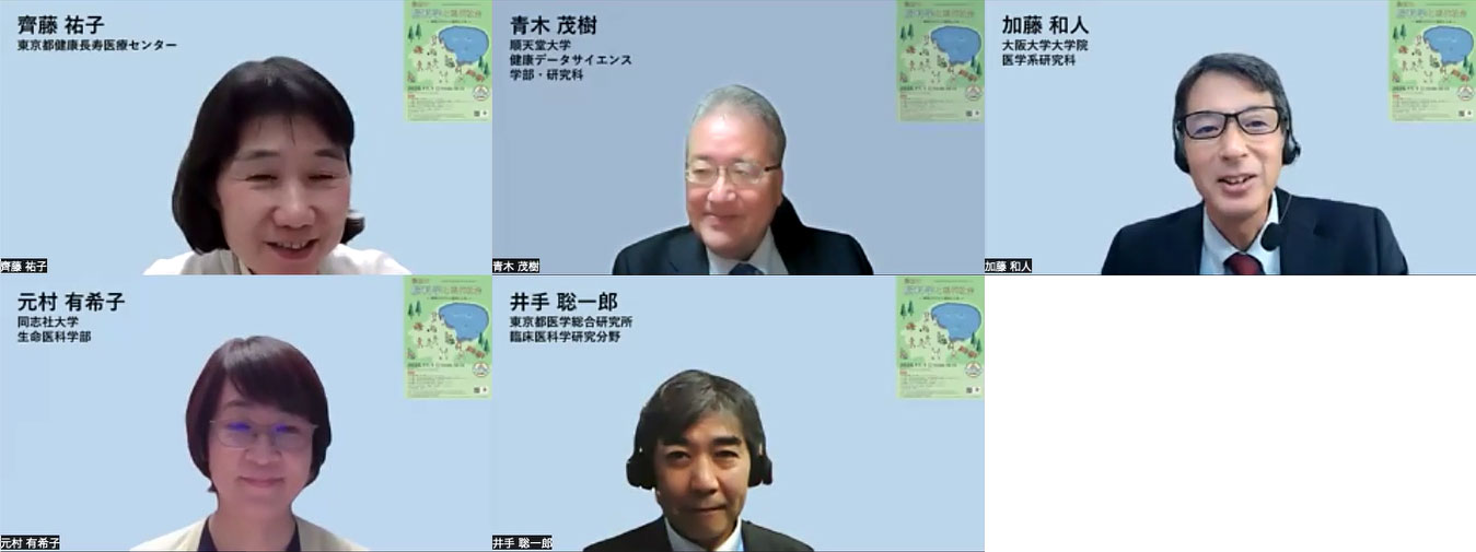 | 登壇者 | 【講演】 ・青木茂樹 先生(順天堂大学 健康データサイエンス学部・研究科)「脳科学と社会を繫ぐ脳MRI:MRI普及率世界一を背景に」 ・井手聡一郎 先生(東京都医学総合研究所)「現代社会における様々な依存」 ・齊藤祐子 先生(東京都健康長寿医療センター)「ブレインバンクをご存じですか?」 【指定発言】 ・元村有希子 先生(同志社大学 生命医科学部) |