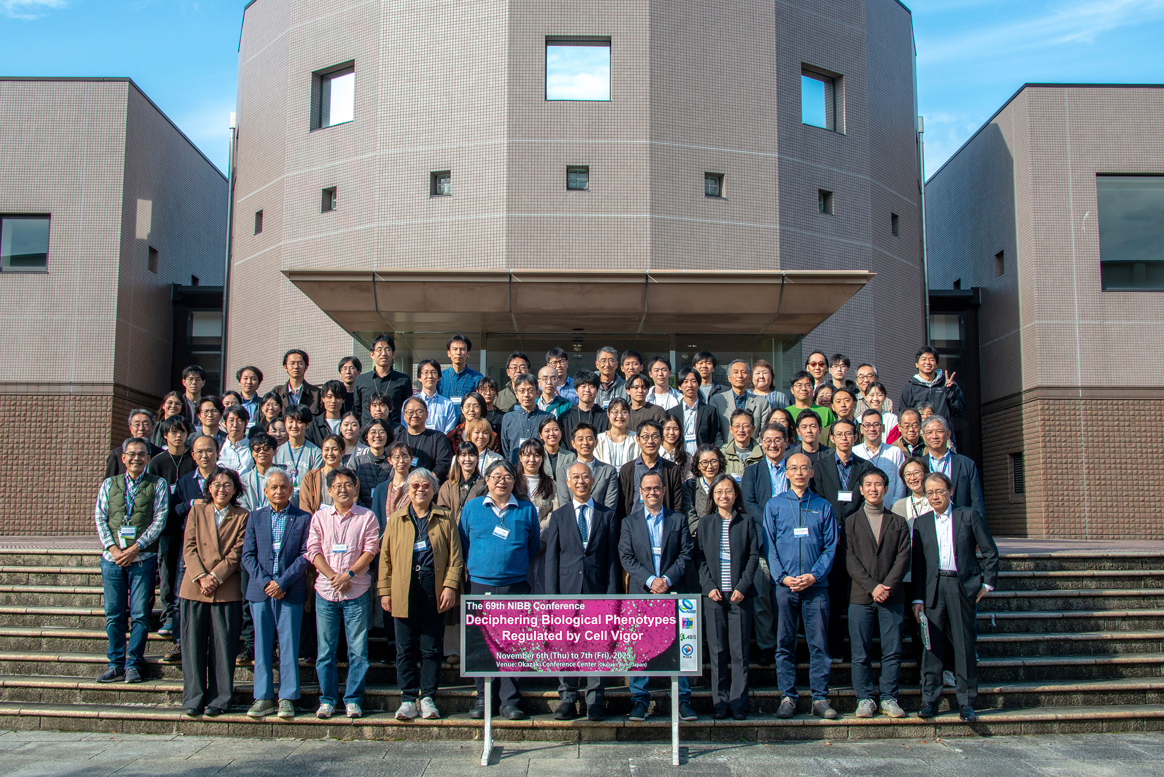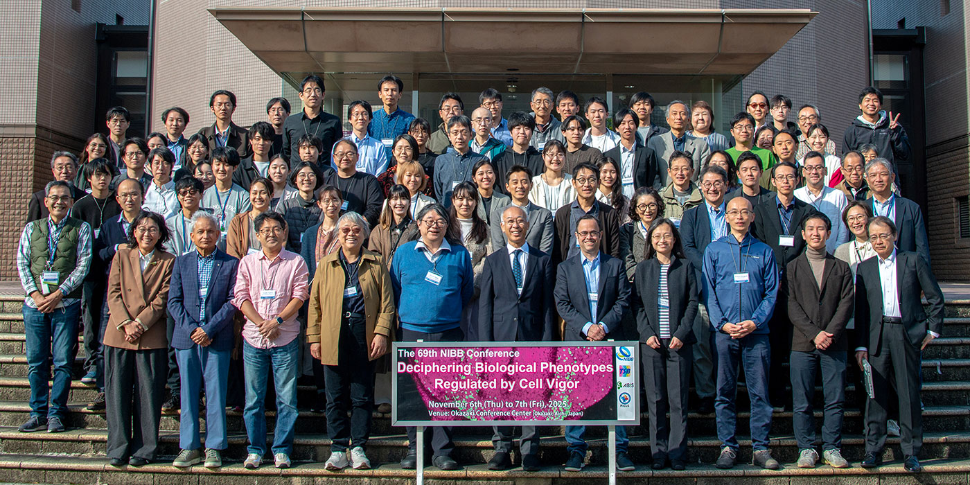 基礎生物学研究所コンファレンス(NIBB Conference)は、研究所の教授等がオーガナイザーとなり、海外からの招待講演者を交えて開催される国際会議です。研究所創立の1977年に開催された第1回以来、基礎生物学分野の国際交流の場として親しまれており、これまで68回の会議が岡崎にて開催されました。2025年度は「細胞の活力制御」をテーマとし、The 69th NIBB Conference "Deciphering Biological Phenotypes Regulated by Cell Vigor"を開催しました。